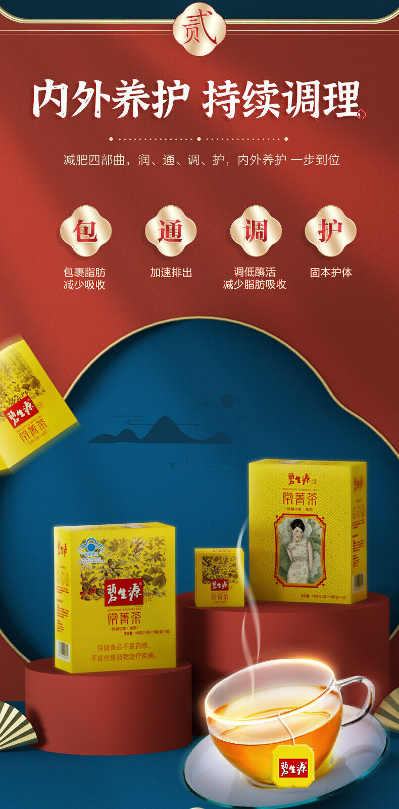 Description: Besunyen Slimming Tea is made from extracts from green tea and traditional Chinese medicinal herbs that can help slim, with a high concentration of tea polyphenols and flavones. The therapeutic tea formula is consisted of the ingredients that work together to speed up metabolism, facilitating breakdown of fat. The tea is a herbal formula that does not contain any medicines. While reducing weight, it helps tone and improve the body. The metabolism normally not rebounds. The Bishengyuan slimming tea effectively removes the intestinal fat oil, accumulated stool, toxins and other harmful substances which fat causing materials. It help you to extract the oil that day to eat. And the anti-fat material resolve stubborn fat cells, making them transformed into energy consumed.