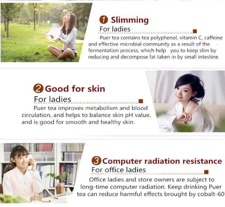 Catechin of the tea has the effect of anti-decrepitude. Total amount of catechin content of Yunnan big leaf species tea is higher than other tea species. The effect of anti-decrepitude is better than other kinds of tea. At the same time, during the process of Pu'er Tea, macromolecular polysaccharide transforms into a great deal of new dissoluble monosaccharide and oligosaccharide. The vitamin C increases doubly, which has an important effect to improve the human being's immune system and preserve health, strengthen body and prolong longevity.
