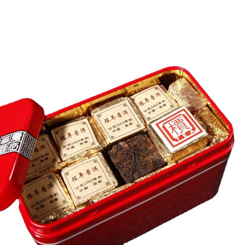Small Square Brick Tea Natural Pu-Erh In Iron Box Health Care Black Tea 250g