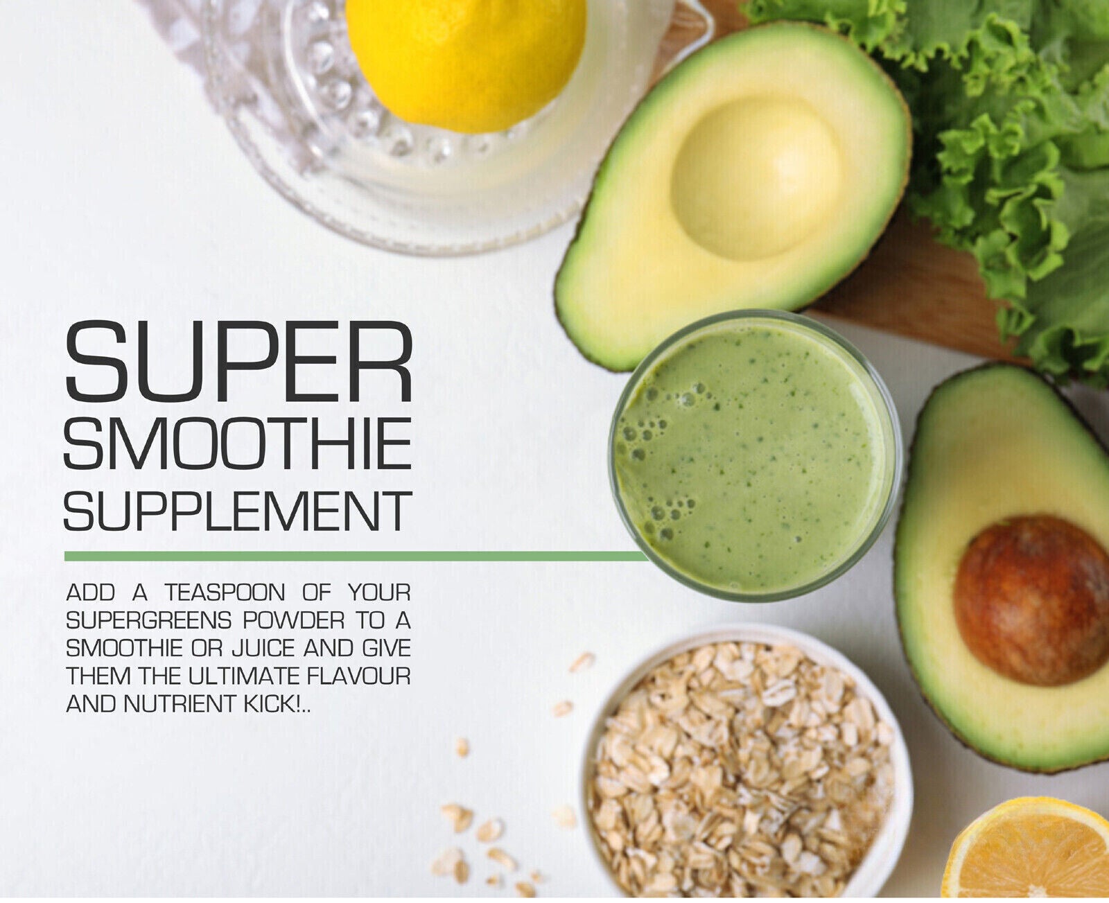DESCRIPTION WHAT ARE SUPER GREENS? Super Greens is an all-natural source of essential nutrients, helping you hit your daily intake requirements with minimal fuss. Super Greens powder is packed full of the very finest super-food ingredients and is an ideal way to get a nutrient boost that can help support...