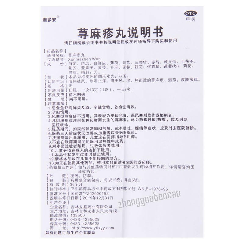 泰多安荨麻疹丸 每盒5袋 1盒装 保质期36个月 Item: Taiduoan Xunmazhen Wan Quantity/Box: 5 Bags Shelf Life: 36 Months Package Included: 1 Box of Taiduoan Xunmazhen Wan