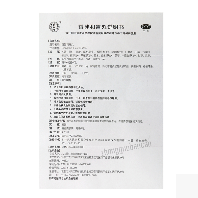 Package Included: 1 Box of Tongrentang Xiangsha Hewei Wan