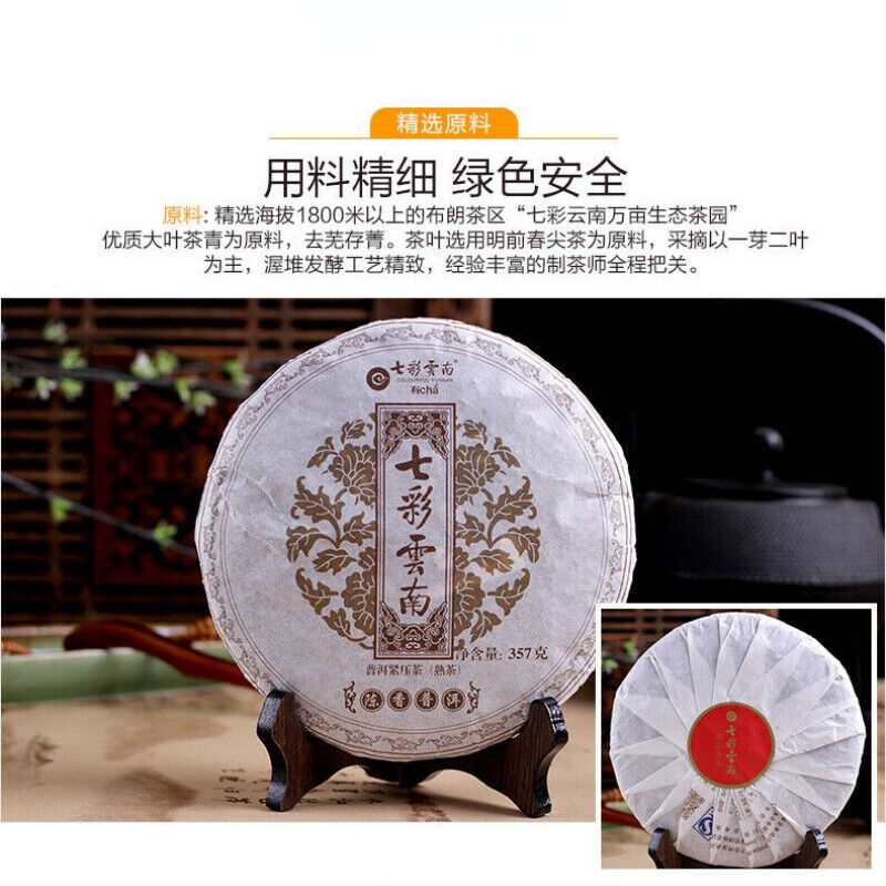 Net weight: 357g/cake, price for one pc only. Production date: Randomly Storage time:the long the better Material: Yunnan Large-leaved Sunshine Withering Antirhea Chinensis. Manufacturer:KunmingColourful Yunnan Qing Feng XiangTea Factory. Pu-erh tea can be purchased as either raw/green (sheng) or ripened/cooked (shu), depending on processing method or aging. Sheng pu-erh can be roughly classified on the tea oxidation scale as a green tea, and the shou or aged-green variants as post-fermented tea. Unlike other teas that should ideally be consumed shortly after production, pu-erh can be drunk immediately or aged for many years; pu-erh teas are often now classified by year and region of production much like wine vintages.