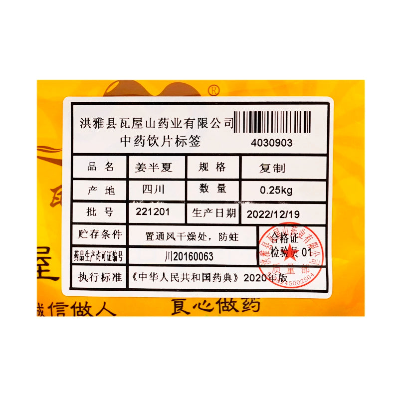Wawasan Pharmaceuticals Chinese Herbal Drinks Ginger Semenxia Replica Chinese Herbal Medicine Shop瓦屋山药业中药饮片 姜半夏 复制 中药材抓配 中药材店铺大全