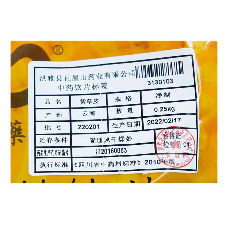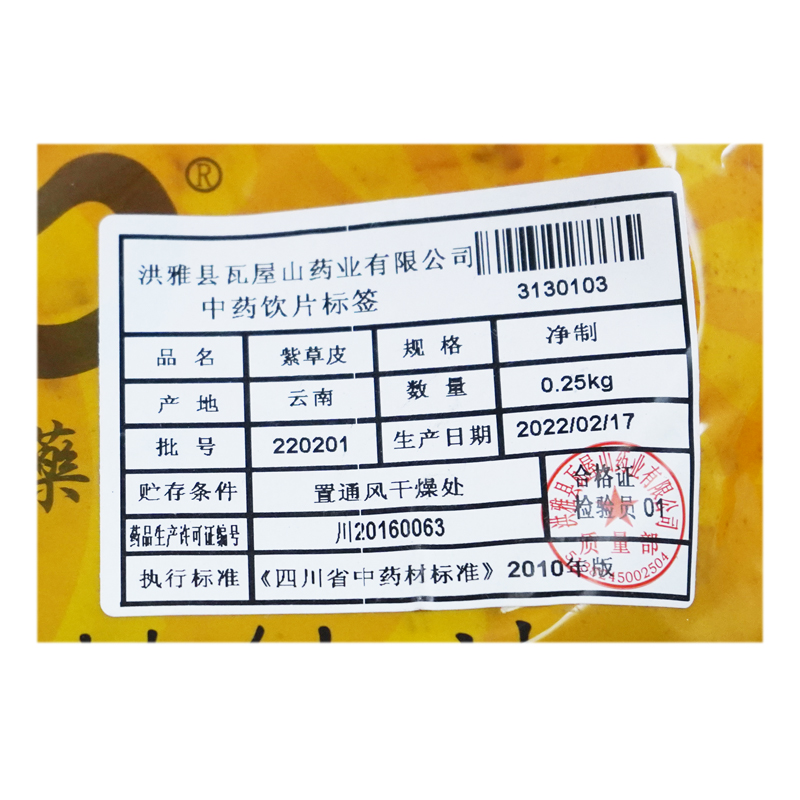 Wawasan Pharmaceuticals Chinese Herbal Drinks Purple Clover Bark Pure Preparation Chinese Herbal Grab & Go Chinese Herbal Shop Directory瓦屋山药业中药饮片 紫草皮 净制 中药材抓配 中药材店铺大全