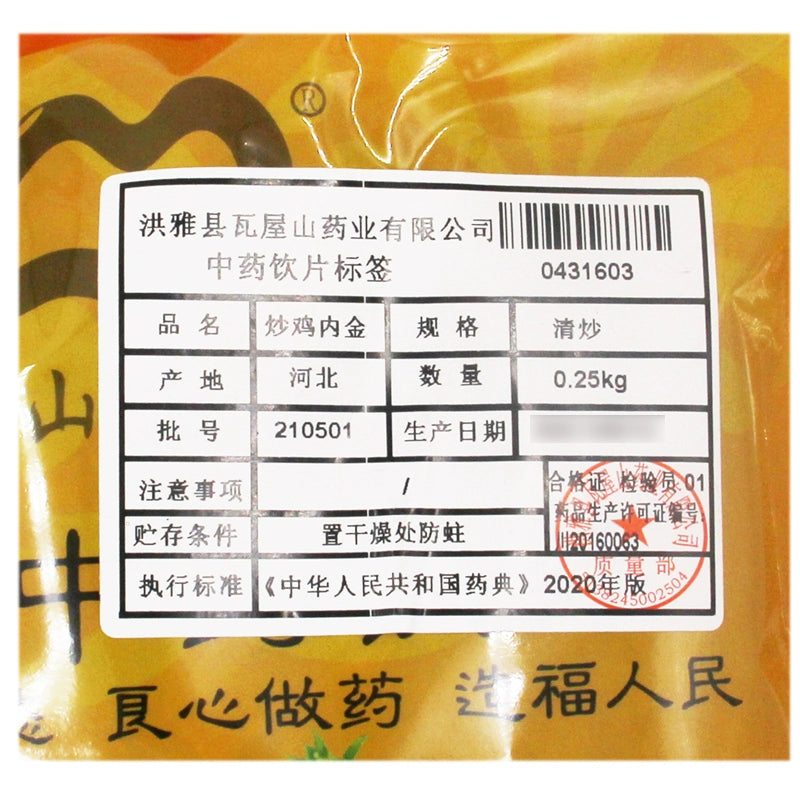 Wawasan Pharmaceuticals Chinese Herbal Drinks Sautéed Chicken Neijin Stir-fried Chinese Herbal Remedies Chinese Herbal Medicine Shop瓦屋山药业中药饮片 炒鸡内金 清炒 中药材抓配 中药材店铺大全