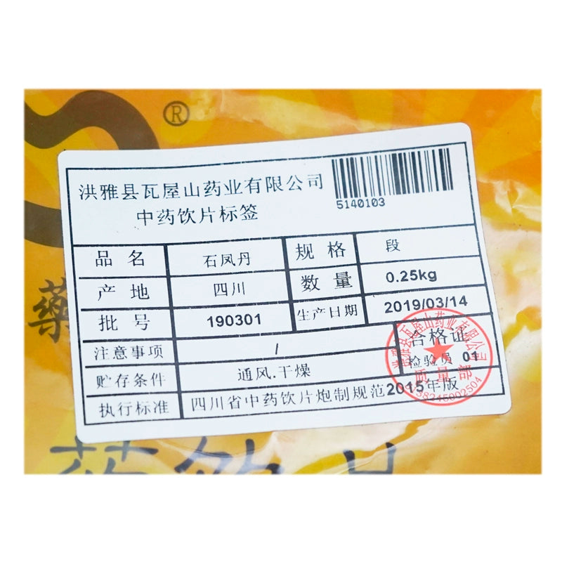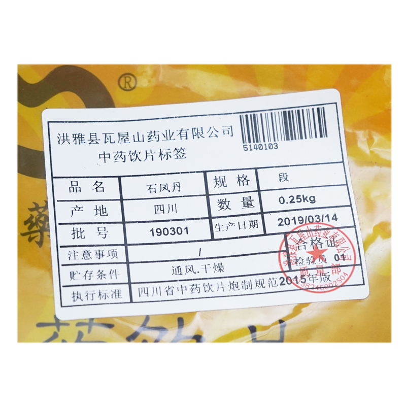 Wawashan Pharmaceuticals Chinese Medicine Drinks Shifengdan Duan Chinese Herbal Medicine Grabbing and Dispensing Complete Chinese Herbal Medicine Shop瓦屋山药业中药饮片 石凤丹 段 中药材抓配 中药材店铺大全
