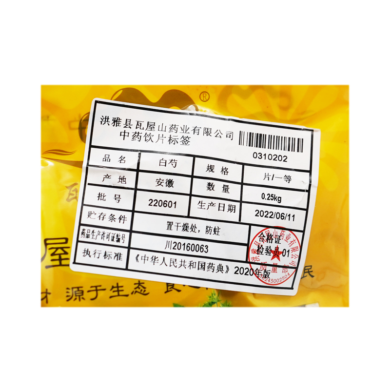 Wawashan Pharmaceuticals Chinese Medicine Drinks White Peony First Grade Chinese Herbal Remedies Chinese Herbal Medicine Shop 瓦屋山药业中药饮片 白芍 一等片 中药材抓配 中药材店铺大全
