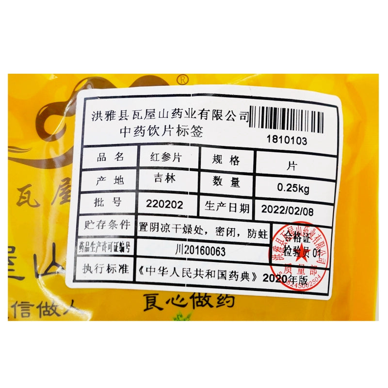 Wawashan Pharmaceuticals Chinese Medicine Tablets Red Ginseng Tablets Chinese Herbal Medicine Shop瓦屋山药业中药饮片 红参片 片 中药材抓配 中药材店铺大全