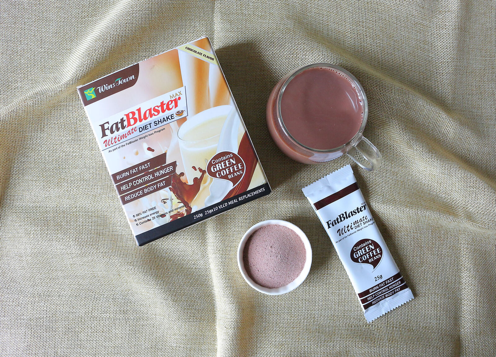 Fat Blaster Diet Shake Weight loss, Burn calories, Boost metabolism, Detoxify, Increase energy levels Product name weight loss shake  Mian Ingredients Soybean protein isolate, fructose, soluble dietary fiber, whey protein soy protein, rice protein, green coffee bean extract, oat fiber, calcium carbonate, salt, magnesium sulfate, Zinc lactate, vitamins minerals Nicotinic...