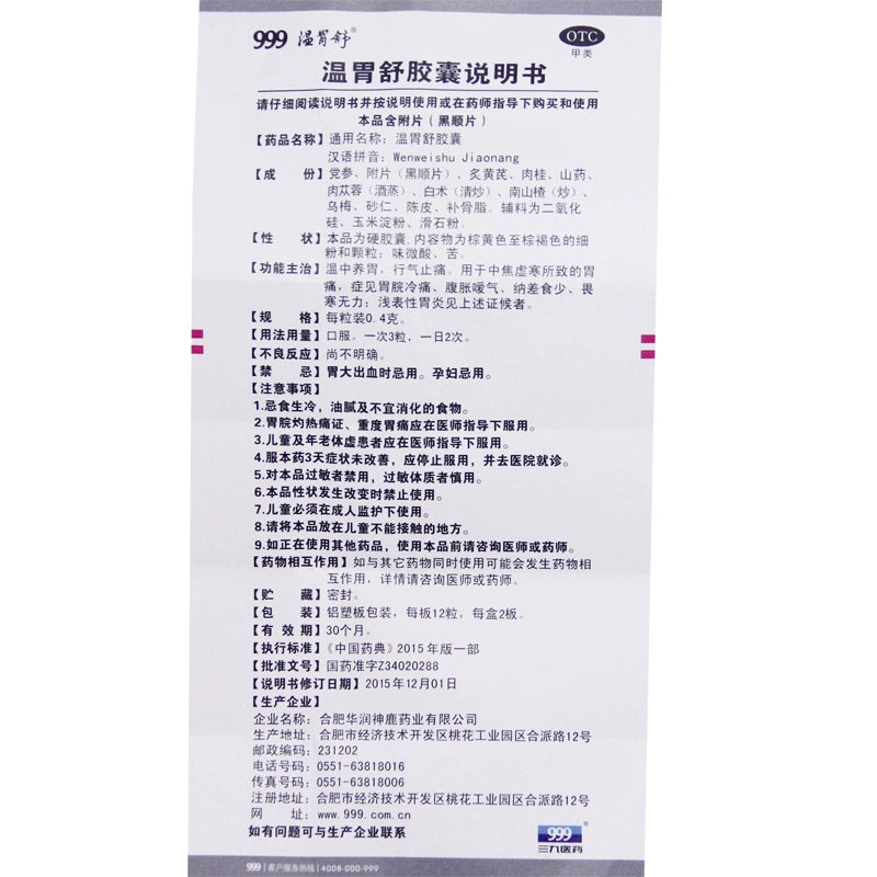 Wen Gastric Shuo Wen Gastric Shuo Capsules 0.4g*24 capsules/box OTC 温胃舒 温胃舒胶囊 0.4g*24粒/盒 OTC