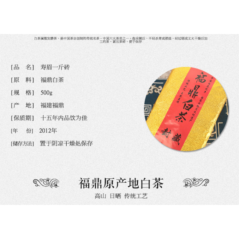 White Tea Taimushan Old White Tea 500g Spring Tribute Eyebrow Gold Brick Fuding