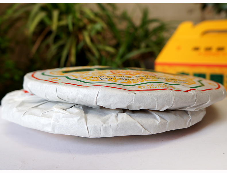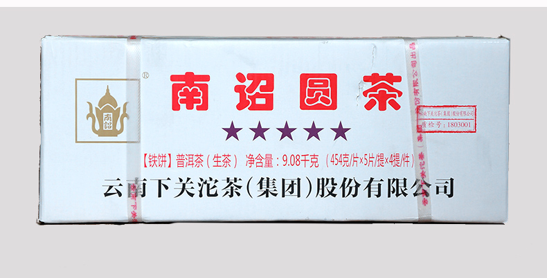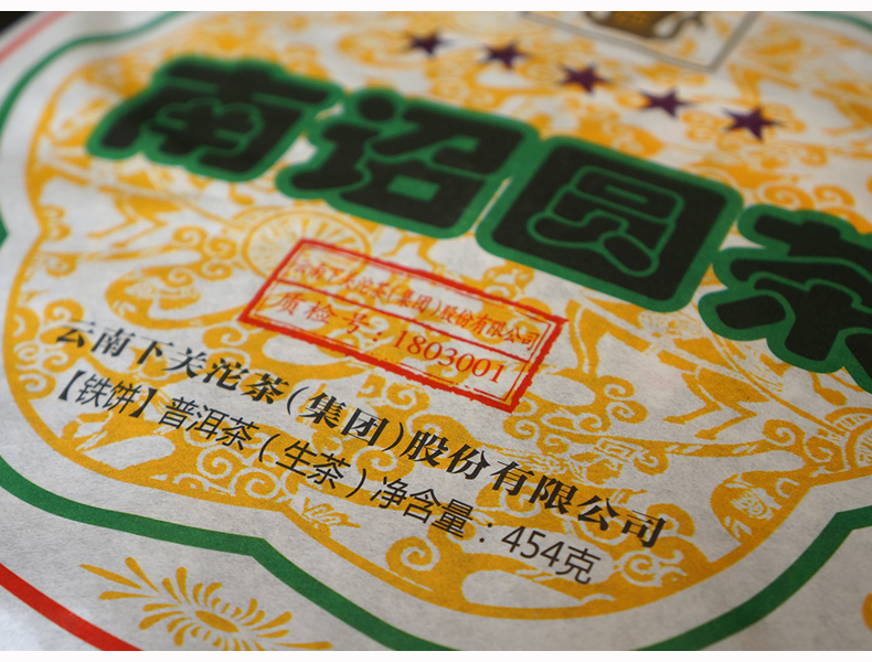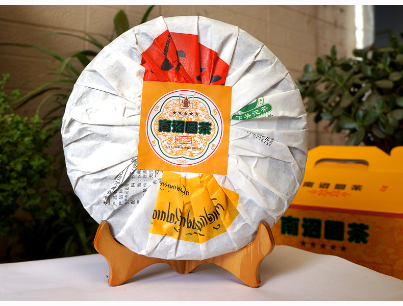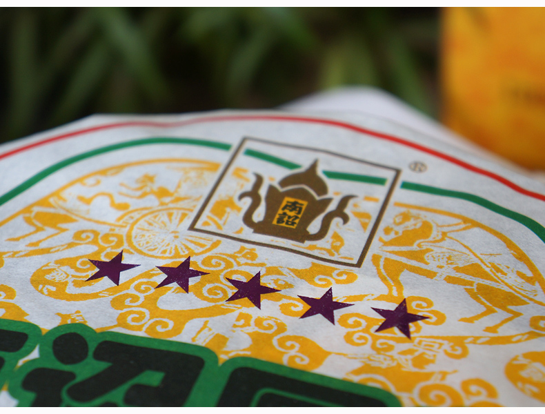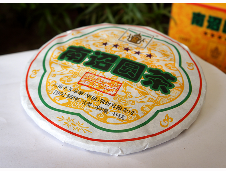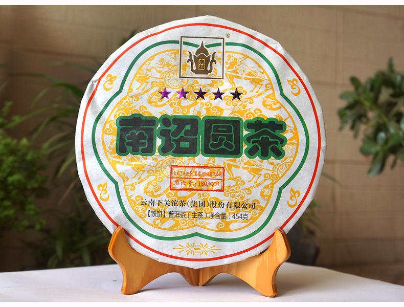 2018 Nanzhao Round Tea - made of fresh and tender green tea from Yunnan's famous mountain big leaf species, blended with traditional recipes, steamed soft, sterilized and pressed. This year's outer packaging paper design is printed with five more stars than in previous years, which means "five-star treasure".