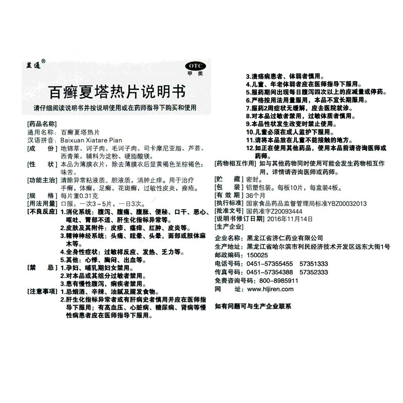 Xiantong 百癣夏塔热片 40片 Allergic Dermatitis Hand, Foot and Tinea OTC显通 百癣夏塔热片 40片过敏性皮炎手足手足癣 OTC