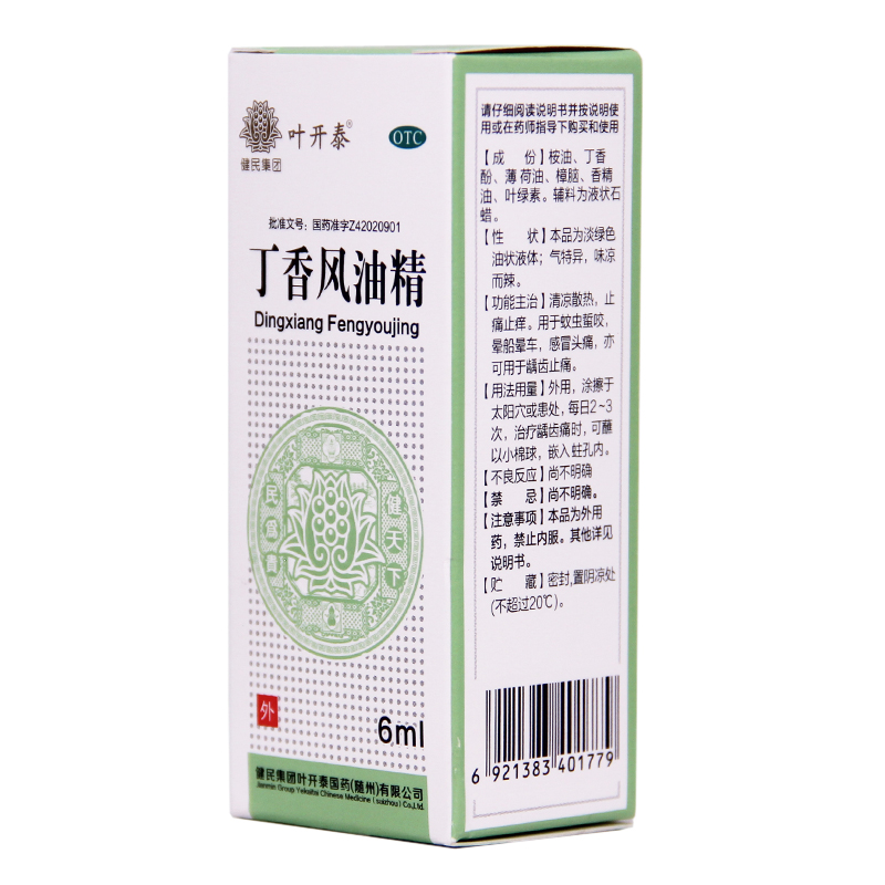 Ye Kaitai Clove Oil 6ml*1 bottle/box OTC 叶开泰 丁香风油精 6ml*1瓶/盒 OTC