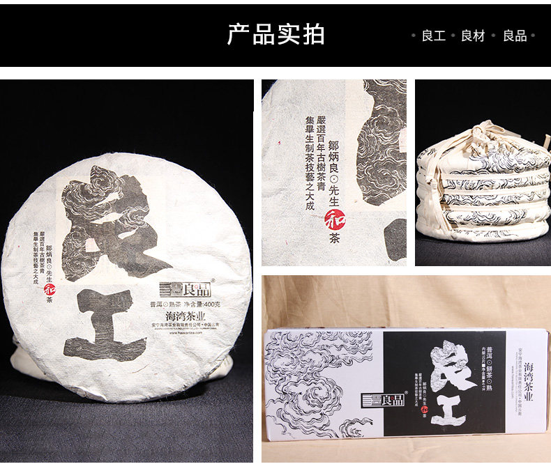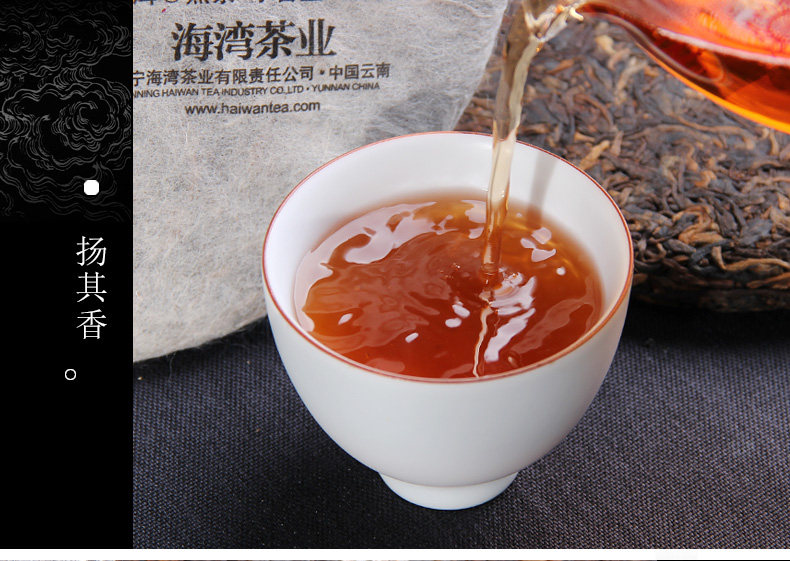 Product detail: Puer type: Puer Tea Ripe Production date: 2017 year. Net weight: 400g/Pcs Origin: Yunnan, China Storage: Clean, airy, dry, avoid direct sunlight, no pollution, no srange smell Manufacturer: Anning Haiwan Tea Industry Co.,Ltd. Tea Material: 【Bulang Mountain, Gelanghe, Mengku, Jinggu】Materials of Ancient Tea Tree Area