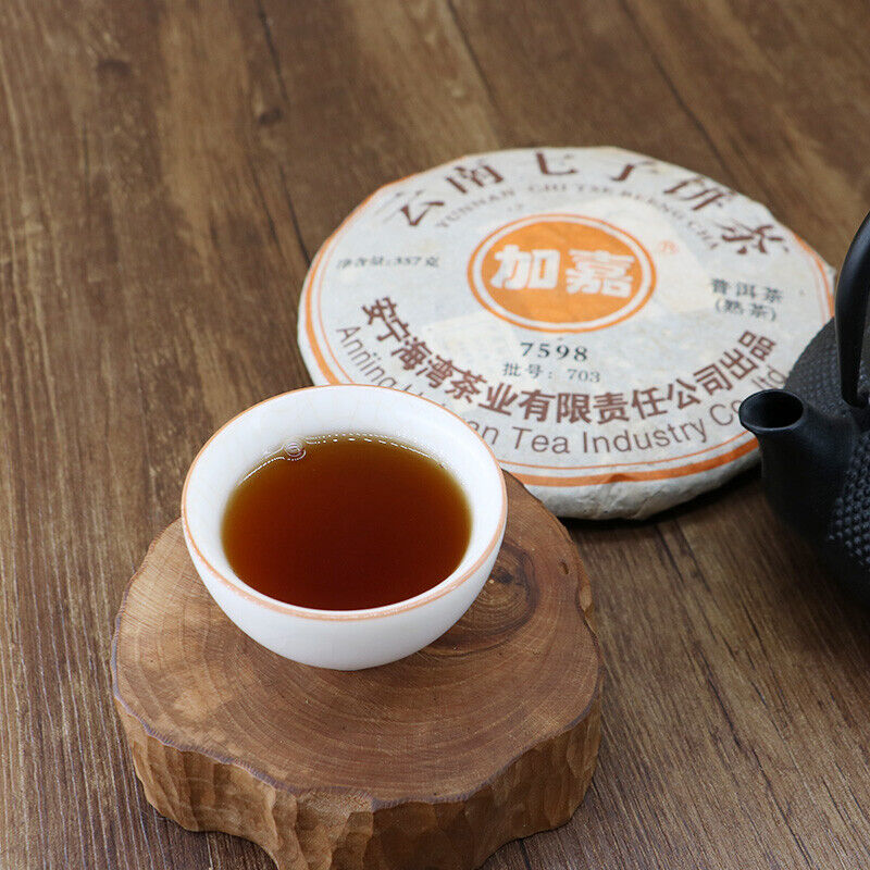 Yunnan Ripe Pu-erh Tea Cake Lao Tong Zhi JIA JIA 7598 Anning Haiwan Tea 357g