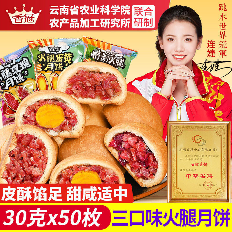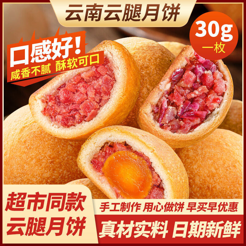 Yunnan Xuanwei Ham Mooncake – 30g Flaky Pastry with Egg Yolk, Mid-Autumn Gift