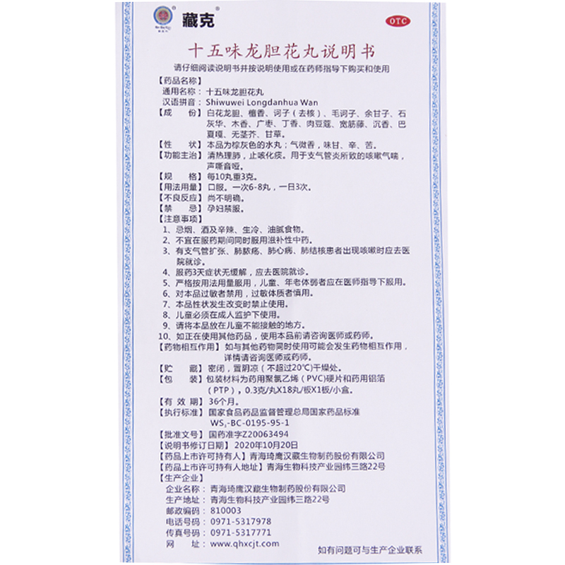 Zangke Fifteen-flavour Gentian Flower Pills 0.3g*18 pills/box OTC 藏克 十五味龙胆花丸 0.3g*18丸/盒 OTC