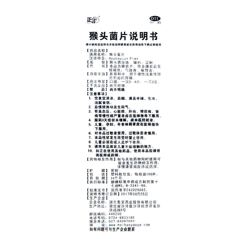 Zhener Monkey Head Mushroom Tablets 100 tablets/bottle OTC 正尔 猴头菌片 100片/瓶 OTC